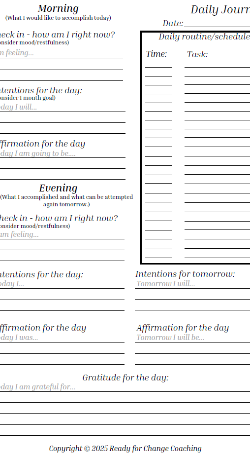 Space for daily reflection, setting intentions, documenting daily routines, and expressing gratitude.